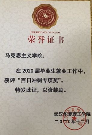 2020年12月11日,我校在学术报告厅举行了2020年招生和就业工作总结表彰大会,我院获得“百日冲刺专项奖”,杜伦芳院长和李运祥教授获得“就业帮扶典型奖”。