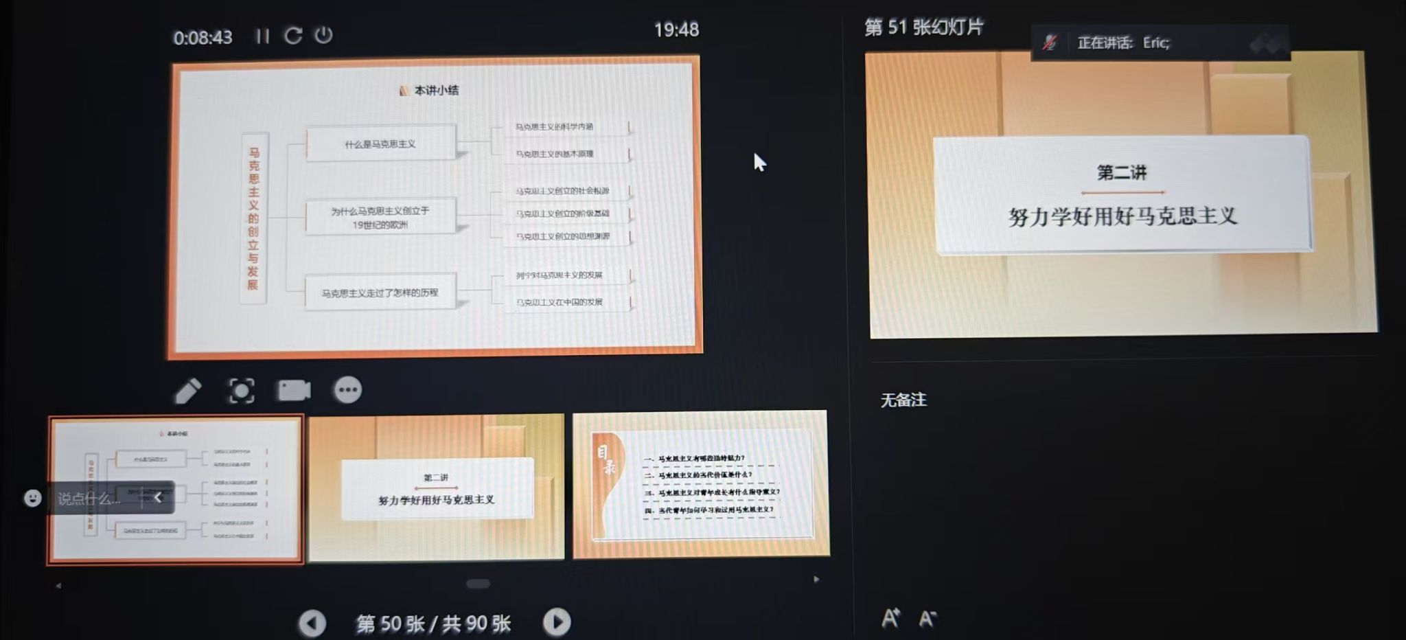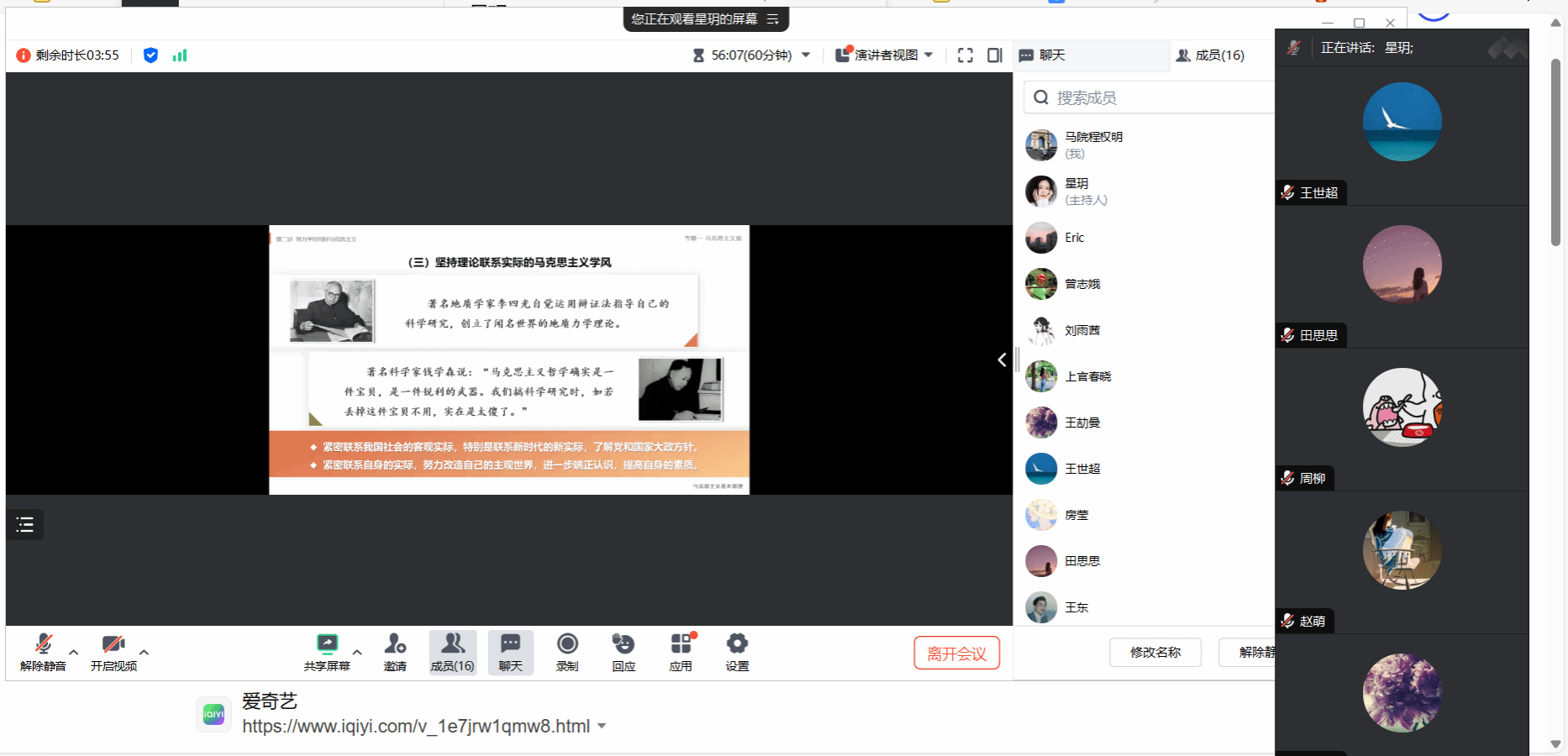 随后,课程组所有教师展开讨论,思政课部副主任程权明分享他的授课内容,他认为课程导论部分可以从“马克思的五张面孔--走进马克思”,引起学生的兴趣,赢得学生的理论共鸣。
