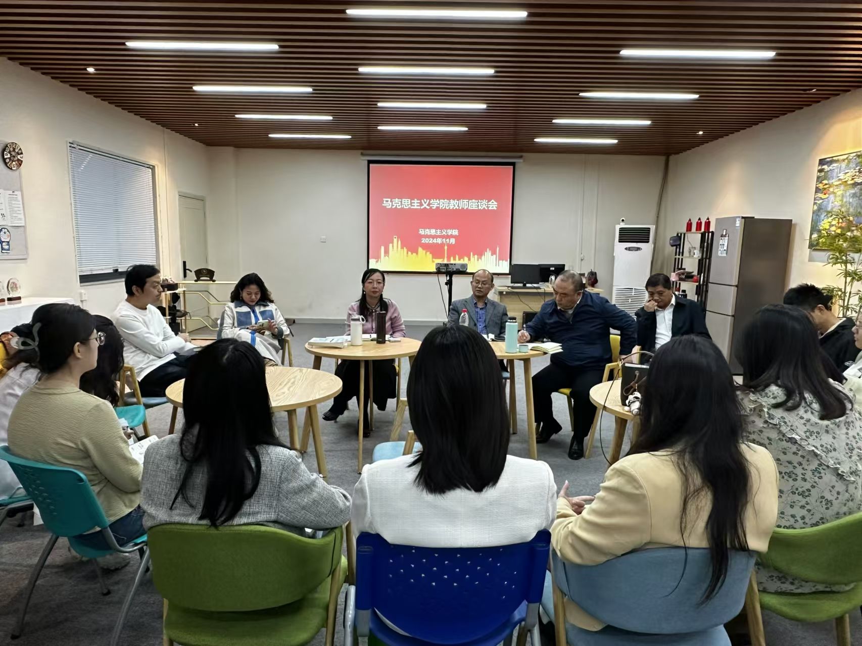 2024年11月7日上午,马克思主义学院组织召开了期中教学检查教师座谈会,本次座谈会以“如何提升课堂教学的实效性和针对性”为主题 ,马克思主义学院全体教师参加了本次会议,会议由马克思主义学院副院长张丽主持。