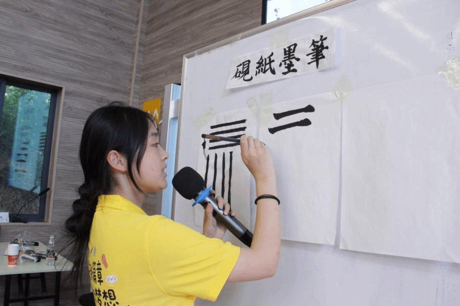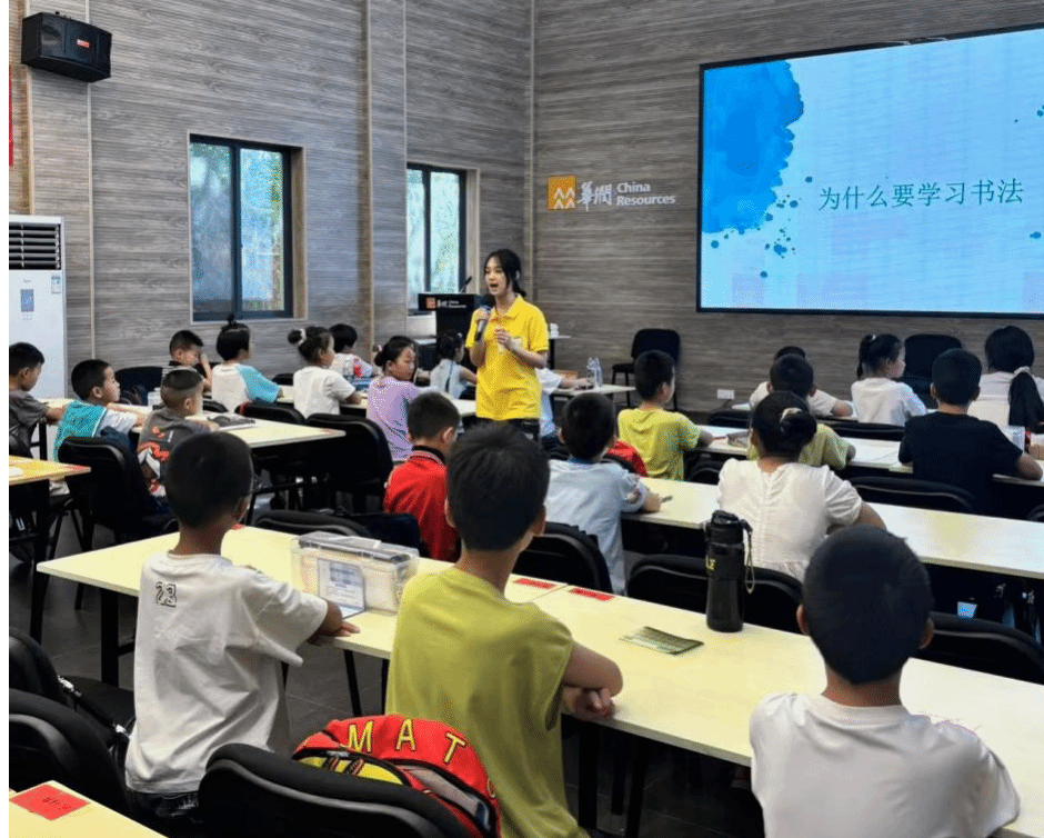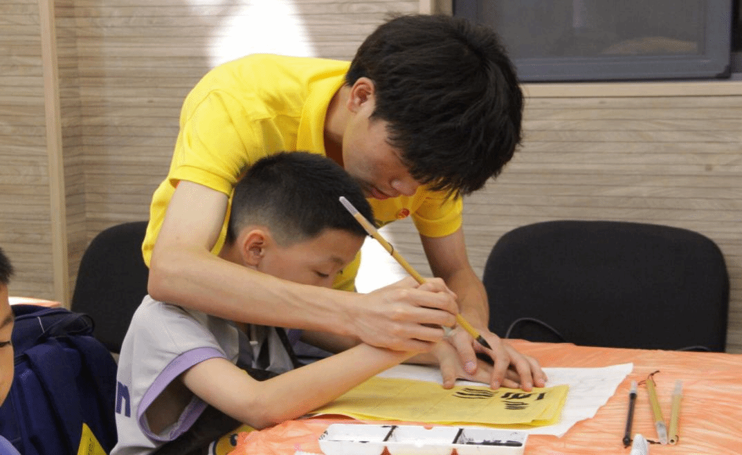 在教学环节,小鹿老师针对小学生的特点,从最基础的握笔姿势、坐姿开始指导,手把手地帮助孩子们纠正。“一拳一尺一寸”,小助教老师们耐心地提醒着,确保孩子们养成良好的书写习惯。