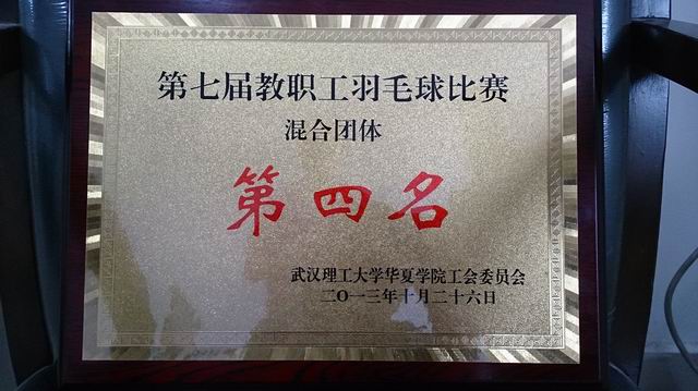 由于两课部部分队员要配合湖北省教育厅进行的数据库录入工作,导致队员人数不足,所以不得不退出下午的比赛,最后两课部止步于学院教师羽毛球赛第四名。
