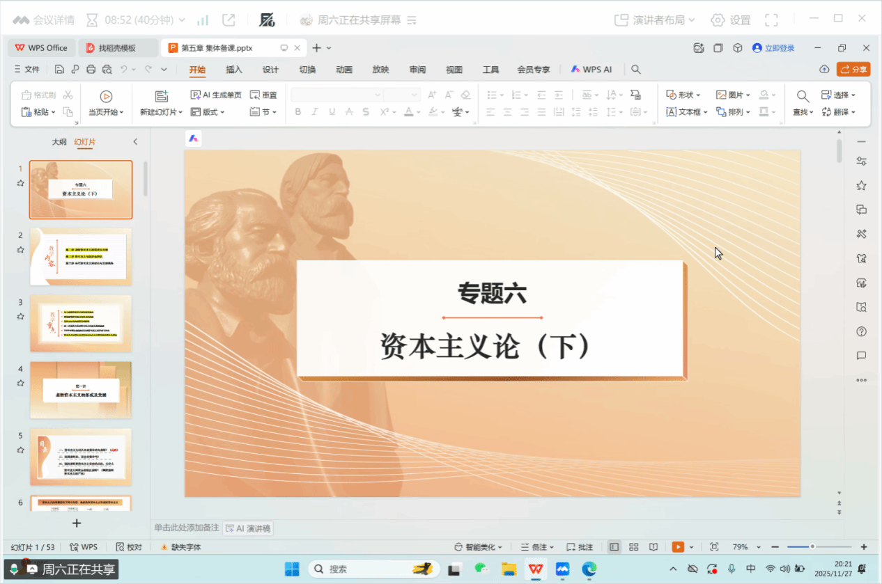 本次集体备课会聚焦《马克思主义基本原理》教材第五章《资本主义的发展及其趋势》,由马原教研室主任赵萌老师主持,马原教学组全体任课教师参会,周柳老师进行说课展示。