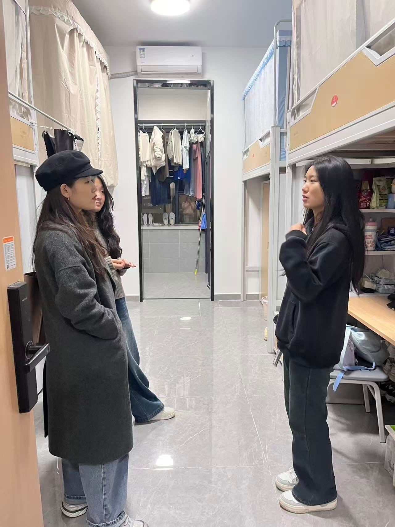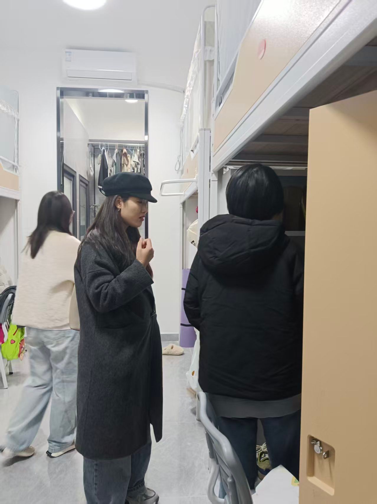 班主任一一走访了1-318至1-321宿舍,以“全覆盖、无死角”为原则,现场检查了宿舍卫生与可能存在的安全隐患,并对存在的安全隐患及时提出整改建议,并现场示范如何规范整理内务,叮嘱同学们注意防火防盗、保持通风换气,共同维护宿舍环境。“最近天气转凉,大家要穿厚点,晚上睡觉记得关好窗户。”在检查床铺时,苏老师一边整理被褥,一边关心学生的生活细节。同学们也积极与老师交流,分享学习生活中的趣事和困惑。针对同学们在学业规划、星级宿舍评比、社团活动、转专业以及人际交往方面的困惑,班主任苏老师都一一进行了细致解答,并分享了行业前沿动态,鼓励同学们打好专业基础,提前做好学业与职业规划。她还强调宿舍安全与集体生活是非常重要的,鼓励同学们一定要互帮互助,珍惜大学时光。