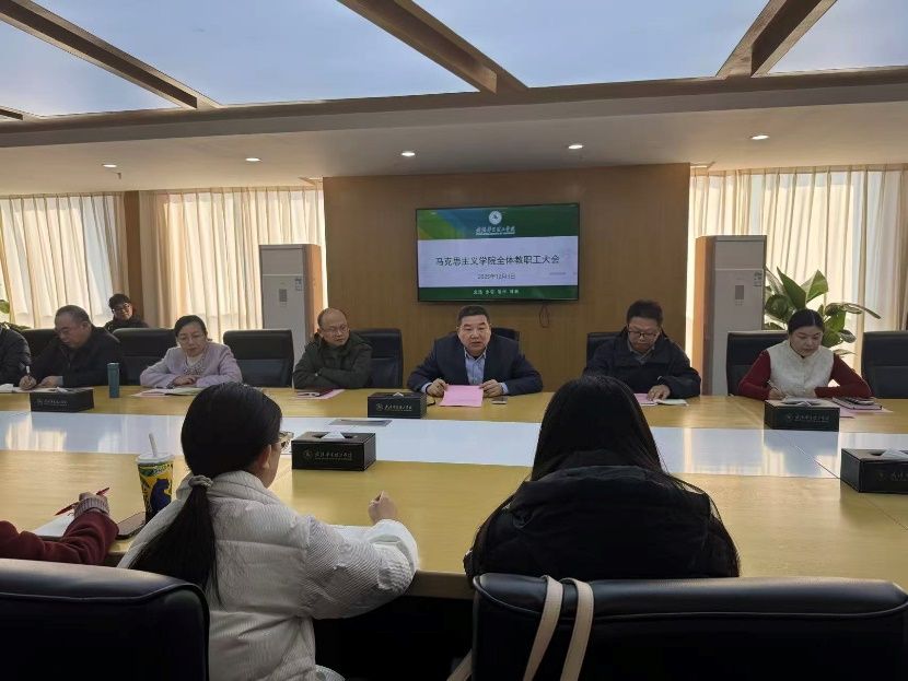 2025年12月3日(周三)14:30,马克思主义学院干部履新会在综合楼1402会议室隆重召开。会议由党委组织部部长淡玉堂主持,校党委书记兼省政府督导专员丁德智、人力资源部副部长谈冰莹以及马克思主义学院全体教职工参加会议。