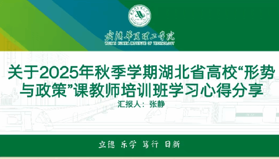 2025年12月4日,2025年秋季学期湖北省高校《形势与政策》课教师培训班学习心得分享会通过腾讯会议顺利召开。本次会议由刘文莉老师主持,张静老师分享在此次培训班的收获,为众多教师带来了新的教学思路。
