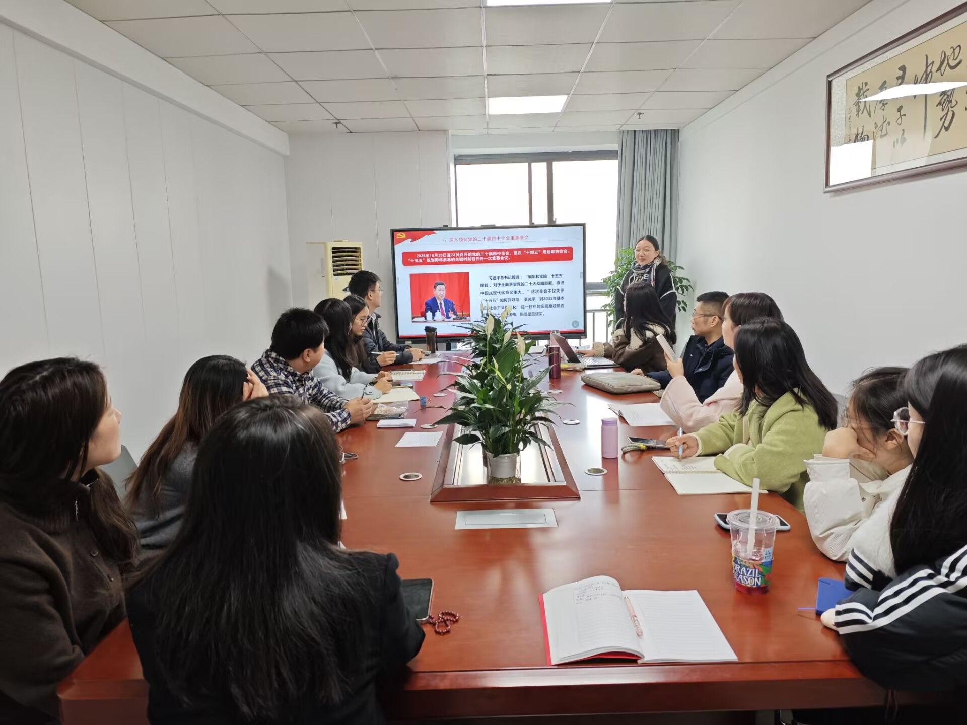 为深入学习贯彻党的二十届四中全会精神,切实把思政课教师的思想和育人行动统一起来,2025年12月8日,马克思主义学院教工第二党支部组织开展“在接续奋斗中谱写中国式现代化新篇章”主题学习活动。活动由教工第二党支部书记吴振琦主持,支部全体党员参加了学习活动。
