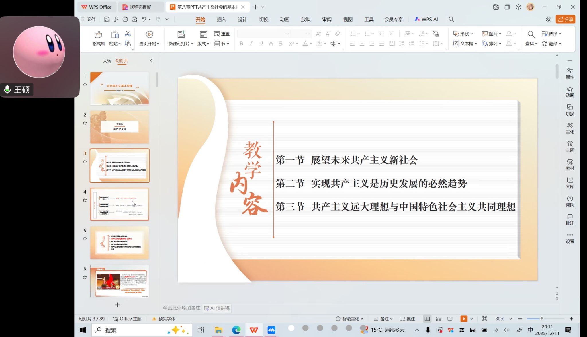 会上,王硕老师围绕第七章《共产主义崇高理想及其最终实现》内容,系统梳理了本章节的教学目标、逻辑框架与重难点,分享了其教学设计与案例应用的初步思路,明确重点应放在“阐述共产主义社会的基本特征,坚持共产主义远大理想与中国特色社会主义共同理想的有机统一”上。