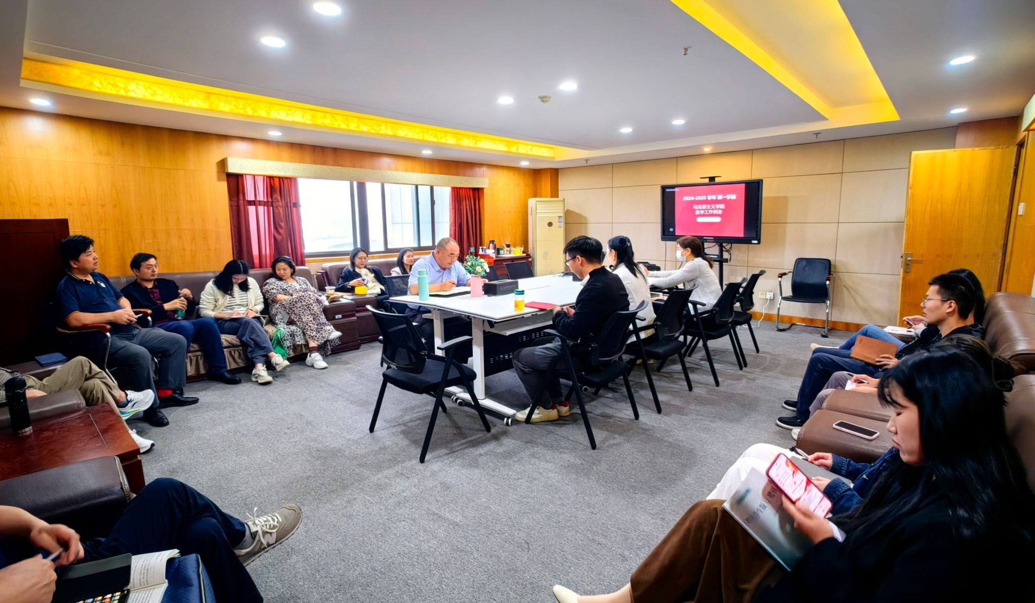 10月07日,马克思主义学院在综合楼1201会议室开展政治学习,会议由马院直属党支部书记王东主持,学院党政领导及全体教职工参加学习。