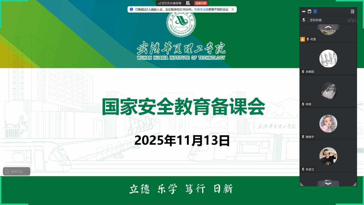 为进一步推进国家安全教育课程建设,提升课堂教学质量,促进教师专业成长,深化教学研究,11月13日,《国家安全教育》课程组通过腾讯会议召开集体备课会。会议由何易老师主持,全体授课教师参加。