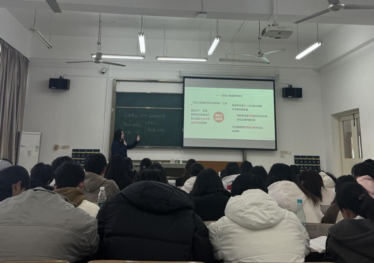 课程伊始,“哲思一刻”学生展示环节生动启思。学生代表结合阿德勒个体心理学中的“共同体感觉”理念,联系现实案例,阐释该观点对大学生成长与发展的现实启示,为后续马克思主义政治经济学内容的学习营造了良好的思辨氛围。