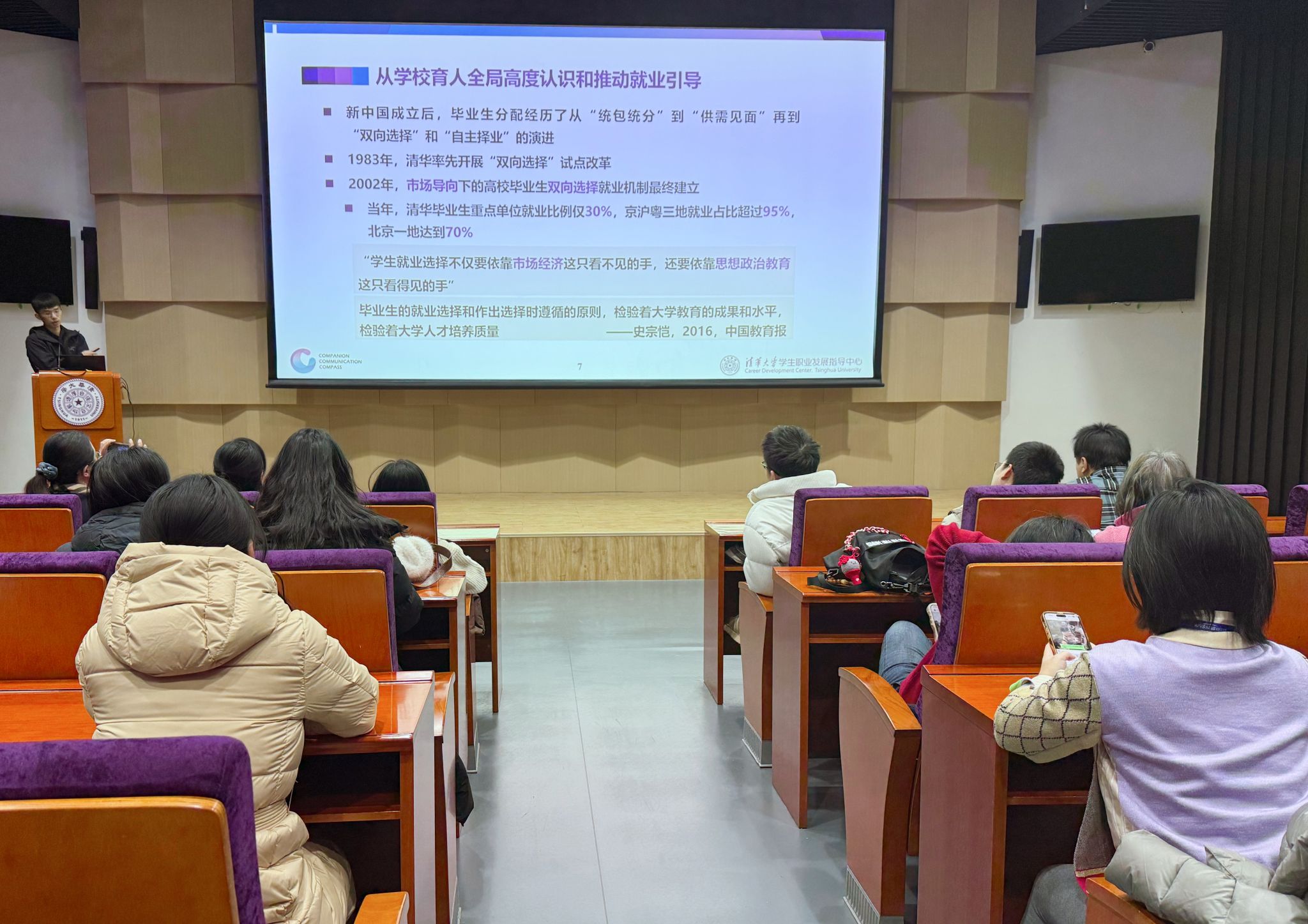 下午,参训教师走进清华大学学生职业发展指导中心实地观摩,近距离学习该校在学生职业规划与思政教育深度融合、协同育人方面的先进理念与实践经验,为我校推进“思政 +”育人模式创新提供了有益借鉴。