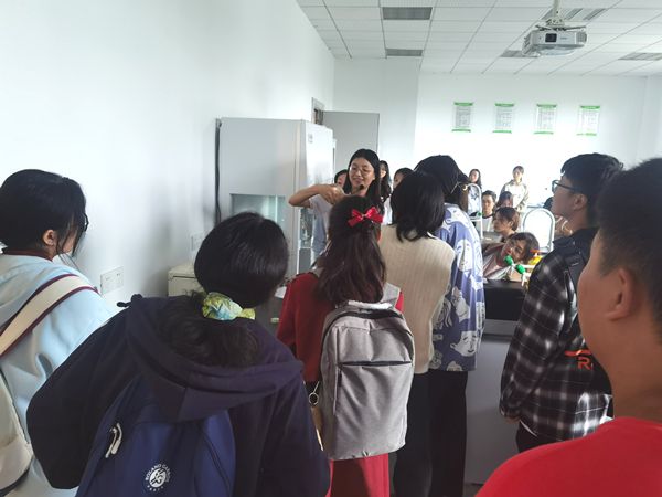 随后在郭婷婷老师的带领下,同学们参观了医学检验技术专业实验室。郭婷婷老师介绍医检专业实验室内即将开展的实验课程时,强调同学们在未来的学习中会逐渐接触不同种类的样本,例如尿液、血液、咽拭子等等这些带有致病菌或生物危险因子的样品,同学们必须遵守实验室生物安全的规章制度,保护自身安全。