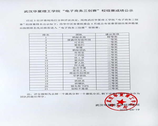 4月18日中午,我校在2-201举行了“电子商务三创赛”校级赛,共有21支队伍参赛进行路演,经5位评委的打分和评议,我院大学生创新创业团队中药枕项目在比赛中获得二等奖。