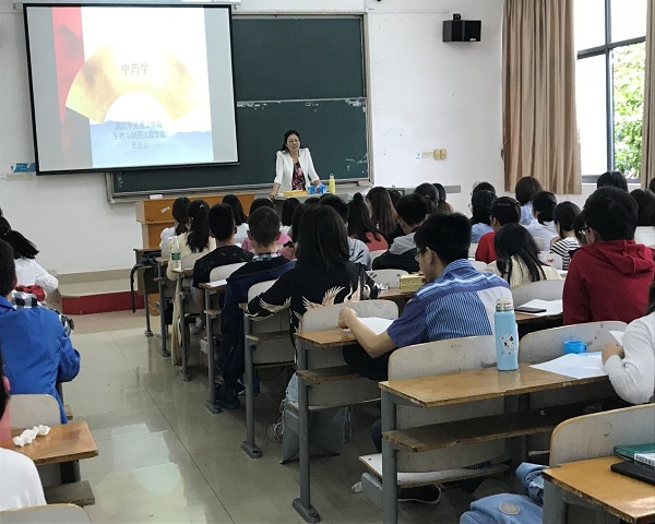 本节课为《中药学》的第一节课,杜老师首先向同学们介绍了该门课程的课程性质、学习目的、授课内容以及课程要求。然后从中医学、中药学、方剂学等概念入手,以《周礼·天官》、《黄帝内经》、《难经》等中医药典籍为线索,讲授了中医药学史概要。课堂上,同学们深深地被杜老师讲授的传统中医药知识所吸引,听课认真,课堂秩序良好。