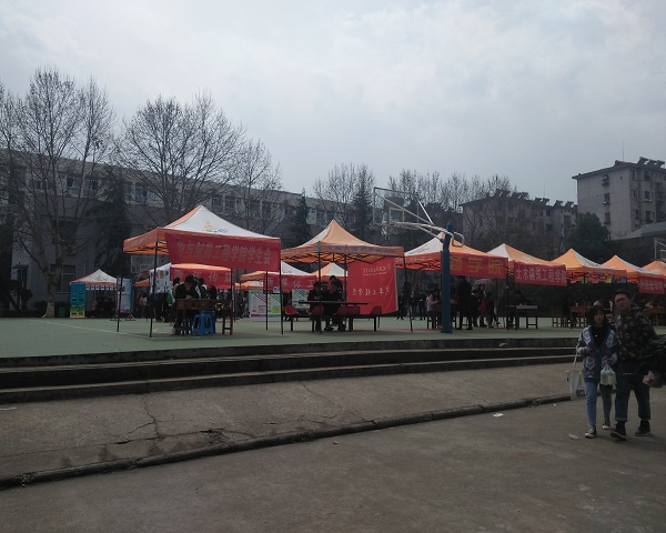 3月21日,学校各个社团在一食堂门口的篮球场举行了春季招新活动,开始了历时三天的“百团大战”。