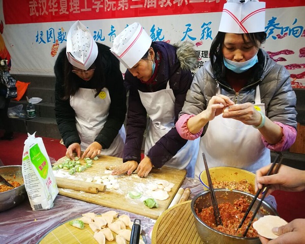 来自各个学院的老师们,用抽签的形式组队,以团队合作的模式进行厨艺比拼,要求每组老师包出150枚饺子,在评委老师和大众评审的舌尖评选下,看看哪组老师的饺子,既包得迅速又美味创意。主持人宣布比赛开始后,老师们迅速行动起来,互相配合,有条不紊地开始包饺子。调馅、擀皮、包馅,老师们的手法都非常熟练。不一会儿,一个个饺子就在她们的手中成型。有包成花形的,有包成三角形的,有包成元宝形的,还有粉色,绿色的饺子,可见选手们很有新意。现场气氛十分火热。一个小时后,我院的参赛老师与土建学院老师一起出锅了此次大赛的第一锅饺子,评委们争相品尝。最后,由现场的10名终极评委和60名大众评委一起,根据各组饺子的色、香、味进行投票。我院与土建学院老师们荣获二等奖。