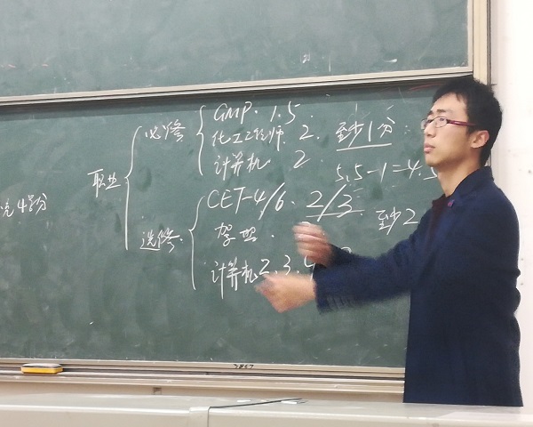 当我们遇到不懂的问题时,肖导都会耐心的给我们解释清楚,在关于学分获得的问题,肖导特地抽在晚自习的时间,在每个班细心的讲解学分问题,重要的地方特地在黑板上,并详细讲解了一些学科的难易程度和学习方法。肖辅导员说,虽然有一些学科刚开始不好理解,但如果能够反复琢磨,加强训练,就一定会取得好的成绩。