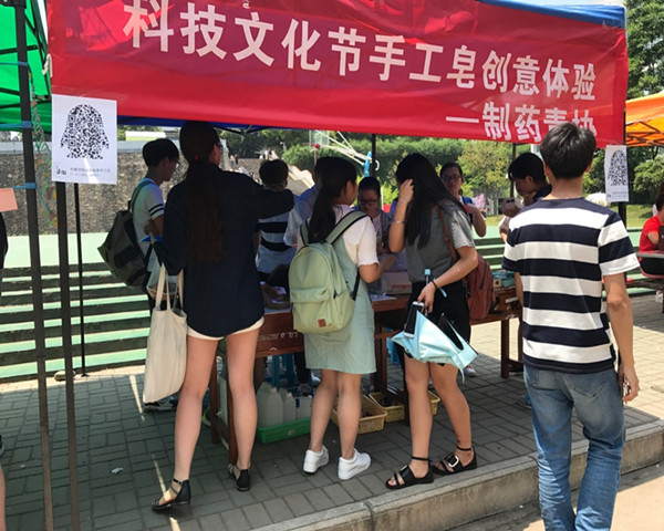 2017年5月17日生物与制药工程学院于一食堂门口开展了科技文化节手工皂体验活动,本次活动的开展是为了向同学们科普手工皂的制作,深入了解手工皂的制作材料及制作流程。