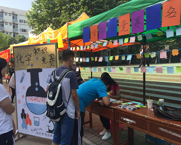 2017年5月17日,由生物与制药工程学院团学联学习部主办的化学知识竞赛宣传报名活动在一食堂门口拉开了序幕。生物与制药工程学院学工办主任樊策己、团总支书记郝思尧到现场指导学生开展活动。这次活动学生团队用便利贴手抄了与生活常识,高中化学相关的化学小知识,并将便利贴粘贴在细绳上展示出来,这个做法不仅突出了他们的主题——化学知识,更装饰了他们活动的地点,在一众的活动宣传过程中中显得格外突出。