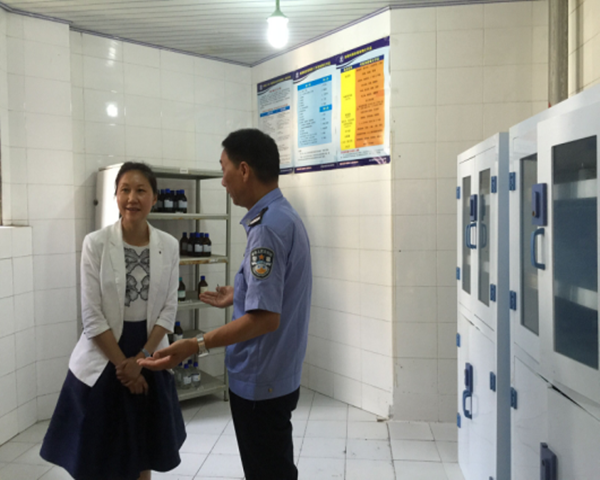 检查过程中,余警官就易制毒化学品仓储地的建设指标是否达标进行逐一审核,并对易制毒化学品管理人员的管理系统学习情况、药品储藏要求等进行询问,同时候警官详细查看了易制毒化学品的台账、购买备案证明,购销合同、中心相关管理制度等资料。