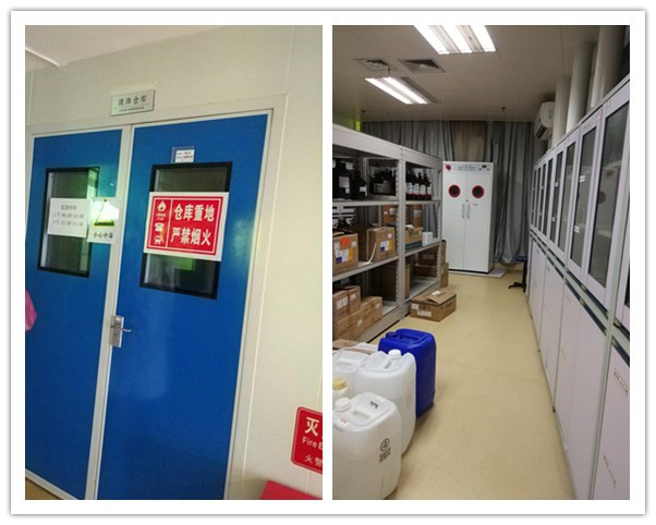 在医药研究院熊技术员的带领下我们参观了他们的现代化实验室。实验室区间分布清晰明确,体现出了一个良好科研团队的工作环境,所有试验仪器由专人负责进行维护和使用,为实验数据保驾护航,确保仪器检测数据的科学有效性。接着,去参观了易制毒化学品仓库,易制毒化学品仓库实行了双人双锁的管理制度,从源头上规范了易制毒药品的取用方式,杜绝了易制毒药物在非常规情况下的流出,避免了易制毒化学品的滥用。这样规范的管理制度为我院实验中心初建的易制毒仓库提供了宝贵的学习经验。