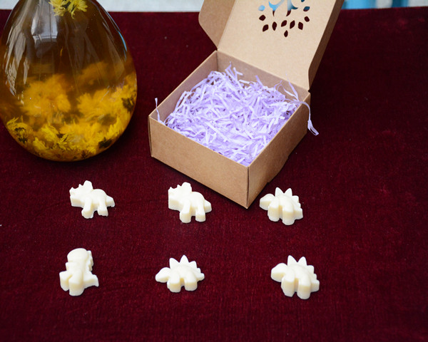 一旁的操作台上,摆放着不同种类的植物油、量杯和模具。详细的介绍我院手工皂的制作过程及制作原料。另一边的试验台分放着市场上的普通肥皂、洗衣皂及手工皂,通过一些简单明了的小实验与我院手工皂进行对比,可以看到市场上的一系列肥皂都过多的添加了荧光剂。荧光剂是一种复杂的有机化合物,其主要成分:二苯乙烯类衍生物,荧光剂不像一般化学成分那样容易被分解,而是在人体内蓄积,产生许多有害的作用,大大削减人体免疫力。荧光剂与伤口外的蛋白质结合,还会阻碍伤口的愈合。其毒性累积在肝脏或其他重要器官,会成为潜在的致癌因素。而我院手工皂的制作是经过我院学生团队及指导老师长时间的摸索反复试验原料配比制作而成。使用材料都是采用纯天然无污染无添加的材料,提取最原始的草本精华制作而成。