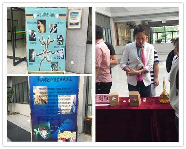 2017年5月10日上午9点在综合楼一楼大厅,生物与制药工程学院举行第一届“校庆杯”手工创意产品展销会。我院院长程弘夏、副院长徐腊英、院书记龚先军出席开幕式。此次展销会手工皂色彩缤纷,造型各异,种类繁多。有精油马赛皂、红石泥马赛皂、竹炭草本植物皂、草本植物皂、去油控逗皂等各类手工皂,每块手工皂都十分精致。