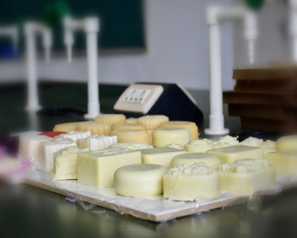 昨天中午12点,记者来到该校生物与制药工程学院实验室,看到操作台上一块块色彩缤纷、形状各异的环保手工皂颇为精致。一旁的操作台上摆放着何种不同种类的植物油、量杯和形状各异的模具,化学工程与工艺专业大二学生王宇一边制作,一边耐心地向记者讲解手工皂的制作过程。王宇说,手工皂中没有添加有害工业剂,也没有进行高温加热反应,植物油中的活性因子得以充分留存,健康又环保
