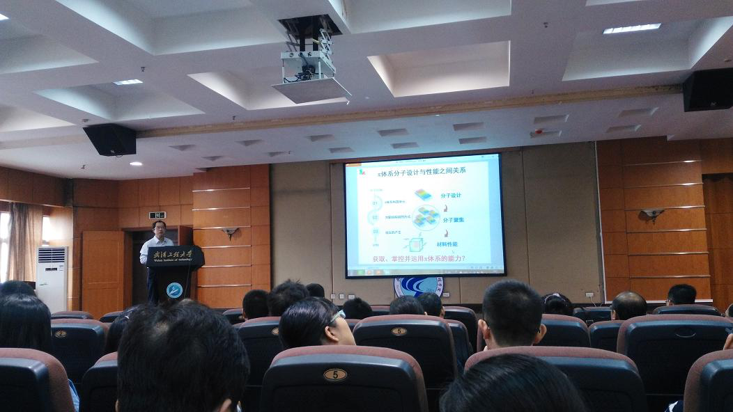 在15日上午的报告中,来自省内各高校的五位青年教师各自介绍了本团队的核心研究成果。开场由武汉大学国家杰出青年科学基金获得者李振教授发言,他为大家做了题为《π体系分子设计与其性能之间的关系初探》的精彩报告,报告中介绍了目前有机高分子光电材料领域的热点问题以及他本人所在团队在蓝光材料、分子设计等方面所做出的成果。报告深入浅出,发人深思,获得了参会者的热烈评价。
