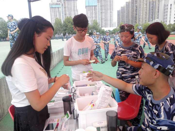 2016年 9月21日早上九点整,武汉华夏理工学院,生物与制药工程学院青年志愿者协会在操场摆点赠药,今年军训天气炎热,小鲜肉们似乎抵挡不住这烈日的炙烤。制药学院青协的志愿者们延续传统,为身体不舒服或者军训中暑的同学免费赠药,只希望为这炎热的天气带来一丝来自内心的清凉,曾经无意中听到一个大一的新生说:挺喜欢萍水相逢这个词儿,因为一个人总会相遇什么,错过什么。制药学院青协的免费赠药构成了属于他们和青春的一段回忆,编成他们生命中的一段小插曲,大一的同学们来自五湖四海,有的同学甚至是第一次离开家人,外出求学,生病之时难免思念家人,思念家乡,虽然大家萍水相逢,但是免费赠药却可以给大家带来一丝内心的慰藉。