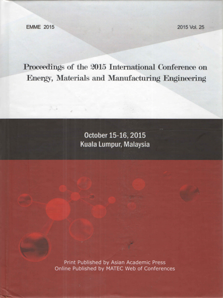 2015国际能源,材料与制造工程大会(2015 International Conference on Energy, Materials and Manufacturing Engineering)于2015年10月15-16日在马来西亚首都吉隆坡举行。围绕能源工程,材料科学与工程以及制造工程三大主题,EMME 2015为来自国内外高等院校、科学研究所、企事业单位的专家、教授、学者、工程师等提供一个分享专业经验,扩大专业网络,面对面交流新思想以及展示研究成果的国际平台,以展示他们在该领域中取得的最新研究成果,探讨本领域发展所面临的关键性问题,以期推动该领域理论、技术在高校和企业的发展和应用,也为参会者建立业务或研究上的联系以及寻找未来事业上的全球合作伙伴。