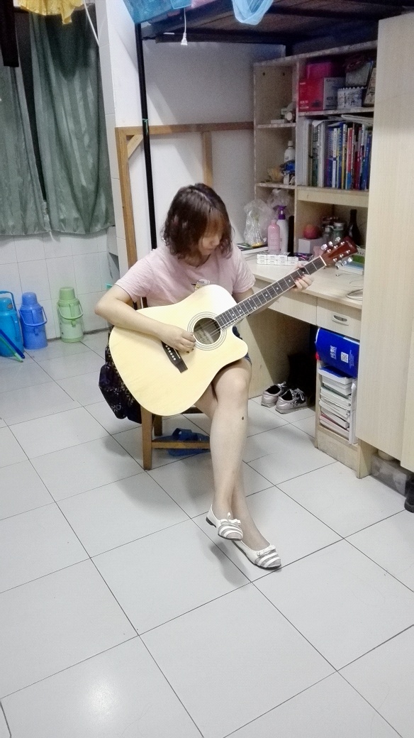 五月十日的晚上,生物制药1141的王素芳同学在寝室里练习吉他,利用更多的空闲时间来做更多有意义的事。