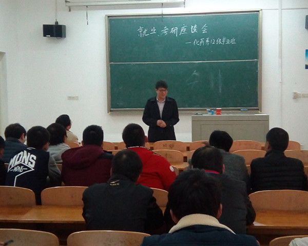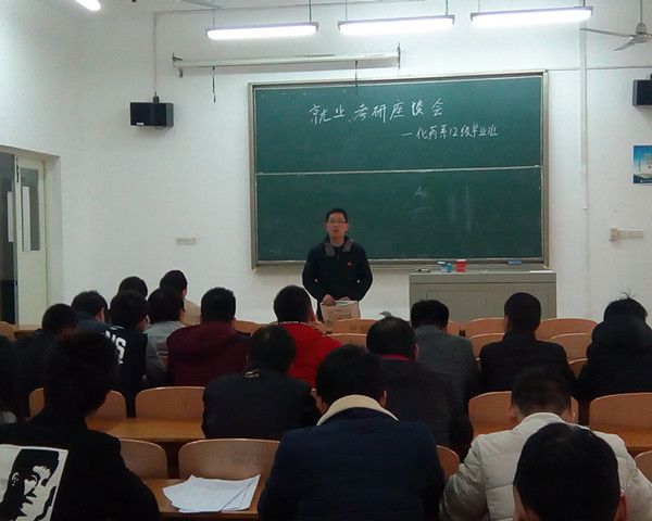 2016年3月3日下午,化学与制药工程系在2-102教室召开了2012级实习、就业、考研座谈会。化学与制药工程系党总支书记汪大巍、化学与制药工程系学工办主任樊策己、化学与制药工程系12级辅导员龚飞以及化药系12级毕业生参加了此次座谈会。