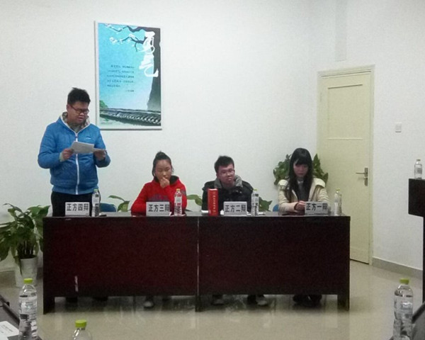 12月4日晚6 :50,我系辩论队参加了真我风采辩论赛,本次辩论赛是由我院主办,规模盛大,竞争激烈。由各系代表担任此次辩论赛评委,化学与制药工程系,汽车工程系等团学联成员代表和学生代表前来观赛。