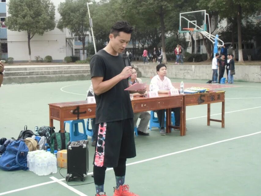 待领导们讲完话后,就到学生发言阶段。首先由文体部助理致开幕词预祝化药杯成功!随后就到学生裁判员发言阶,学生裁判员宣誓内容是,学生裁判员将保持公正公平公开的态度对待每一场篮球比赛,绝不弄虚作假,不徇私舞弊,在评判方面,将于正式篮球比赛靠齐,做到不错判,时刻保持专业道德节操。裁判员的宣誓,是篮球比赛公平的保障。学生裁判员宣誓后,由学生代表运动员发言,学生代表运动员宣誓将积极投入篮球比赛之中,服从裁判的指令,做到友谊第一,比赛第二。紧接着就到振奋人心的时刻了,由我系啦啦队表演开场舞,啦啦队伴随着充满青春活力的歌声,跳起了轻松活泼的舞蹈,为篮球赛加油,待啦啦队表演完,化药杯篮球赛正式开始!