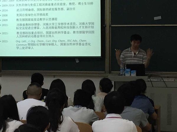 通过前期的精心准备2节课中教学效果非常好,讲授的内容实践应用强,学生认真听讲,教师与学生互动,课堂气氛活跃。此次授课的班级是13级制药和生物制药90多名学生,化药系其他班级的部分学生、药明康德多名技术负责人、企业受训的员工也到课堂旁听,企业还对课堂全程录像,作为企业培训资料之一。课程结束后就学生和企业对教学效果进行了了解,双方都非常满意,另外两次课将在6月4日和6月18日开展。