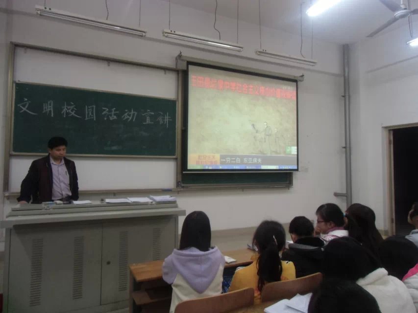 为了创建武汉市建设新型文明城市,同时结合我院创建文明单位的要求,倡导学生爱护环境,保护环境,构建文明校园。我系积极响应学院的号召,于11月13日-14日下午,我系在团学联主席黄茂新,青协副会长施洪涛等同学的带领下,完成了我系所有被安排的地方。