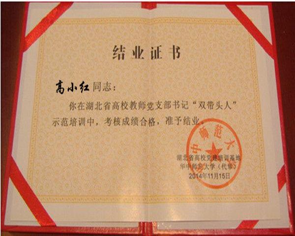 2014年11月13日至15日,我院化学与制药工程系系教工二支部书记高小红老师参加了为期三天的湖北省高校教师党支部书记“双带头人”培训班。