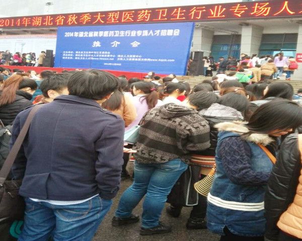 在湖北洪山体育举行的2014年湖北省秋季大型医药卫生行业专场人才招聘会,参会单位有华中科技大学同济医学院附属协和医院、武汉大学中南医院、湖北省人民医院、湖北省新华医院、湖北省中山医院、湖北省中山医院、湖北省妇幼保健院、武汉亚洲心脏病医院等近500家医疗机构、科研院所、医院、各类医药企业(制药企业、医药公司、医疗器械公司等);食品、保健品、医药企业等参会。岗位涉及临床医师、药剂师、医技、护理、中医学、医学影像、医学检验、针灸推拿、麻醉、口腔、内外科、耳鼻喉科、眼科、妇科、儿科、检验科、放射科、客服、市场策划、生产部经理、制药工程、产品研发、市场开发人员等20000多个招聘岗位,七成岗位面向2015届应届毕业生。