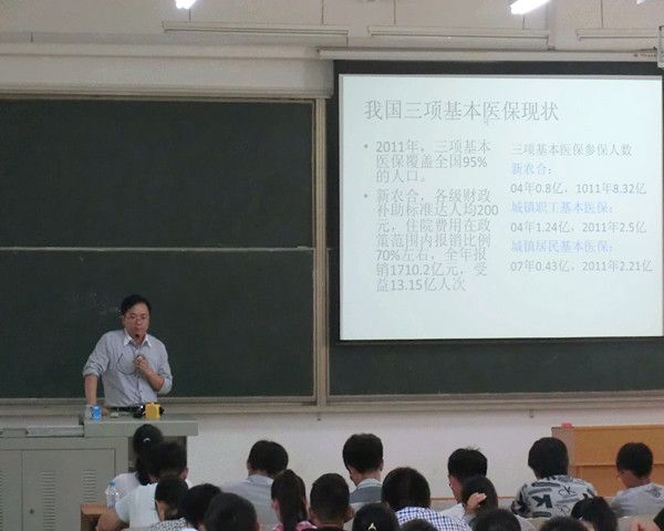 作为化药系的一名学子,同学们也应当要了解与我们系专业相关的医疗改革方面的知识。因此,汪大巍老师接着给新生讲解了医疗保险的相关知识,让他们了解到医疗保险是为补偿疾病所带来的医疗费用的一种保险。职工因疾病、负伤、生育时,由社会或企业提供必要的医疗服务或物质帮助的社会保险。如中国的公费医疗、劳保医疗。医疗保险具有社会保险的强制性、互济性、社会性等基本特征。