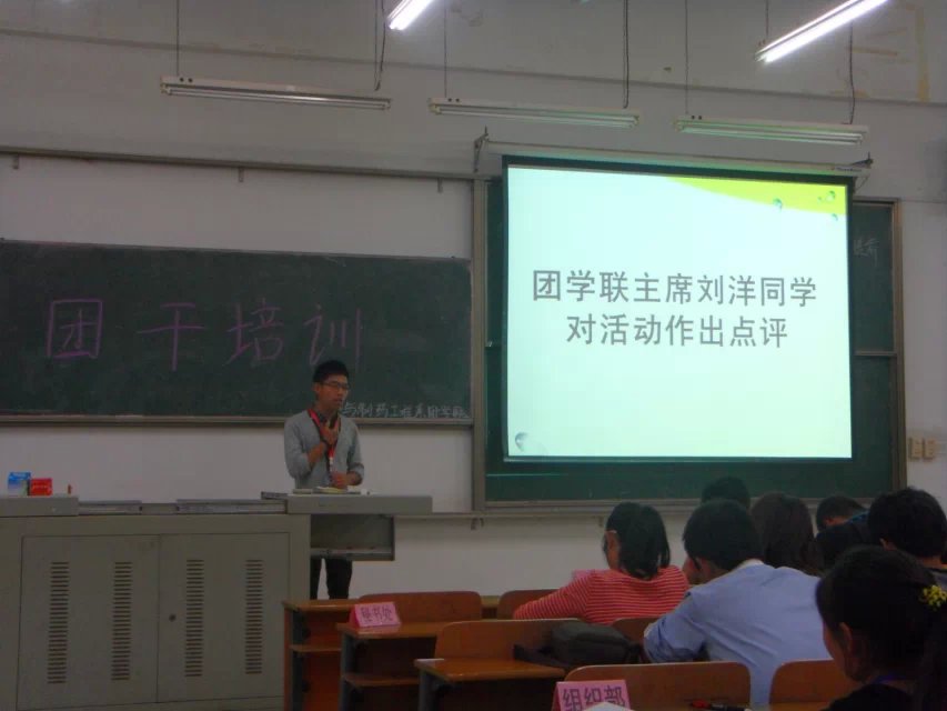 10月18号晚,我系团学联全体成员在1-101举行了团干培训大会。团学联主席黄茂新,副主席兼学生副书记刘洋以及副主席杨元曦参加了本次大会。