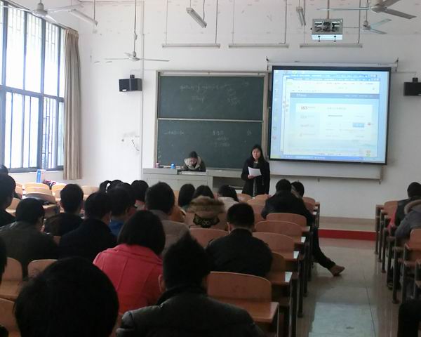 在2-108招聘专场,武汉呵尔医疗科技发展有限公司人力资源部的经理谢明燕首先进行了企业宣讲:从企业文化,经营理念及本次招聘的岗位设置一一向到场的化工、制药和药剂三个专业方向的近百名毕业生作介绍,系学工办主任樊策己,毕业班辅导员吴振琦、龚飞老师也来到招聘现场处理相关事宜。