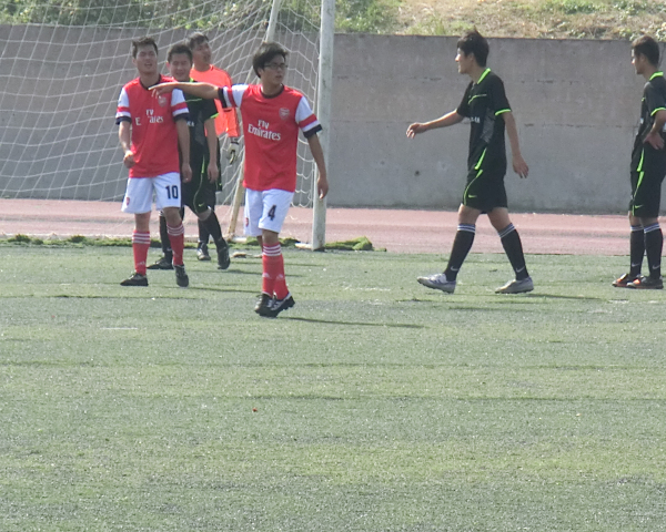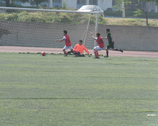 随着裁判的一声哨响,比赛开始。9点40分,汽车队7号球员在队友的帮助下辗转进攻至球门口,在守门员防备不慎情况下为本场比赛踢入第一球。在两队你争我夺的过程中,球多次被踢出场外。汽车系步步紧逼,几次险进一球。化药队在战术配合时未达到预期状态,导致汽车队长期领先。上午10点,上半场结束。汽车队以1:0暂时领先。10点20分,下半场开始,赛场气氛愈加浓烈。10点30分,汽车队11号球员又进一球。10点33分,一次刁钻的角球又为汽车队增加一分。化药队虽奋力防守,却仍未挽回败局,最终以5:0失败而告终,失去了进入半决赛的资格。