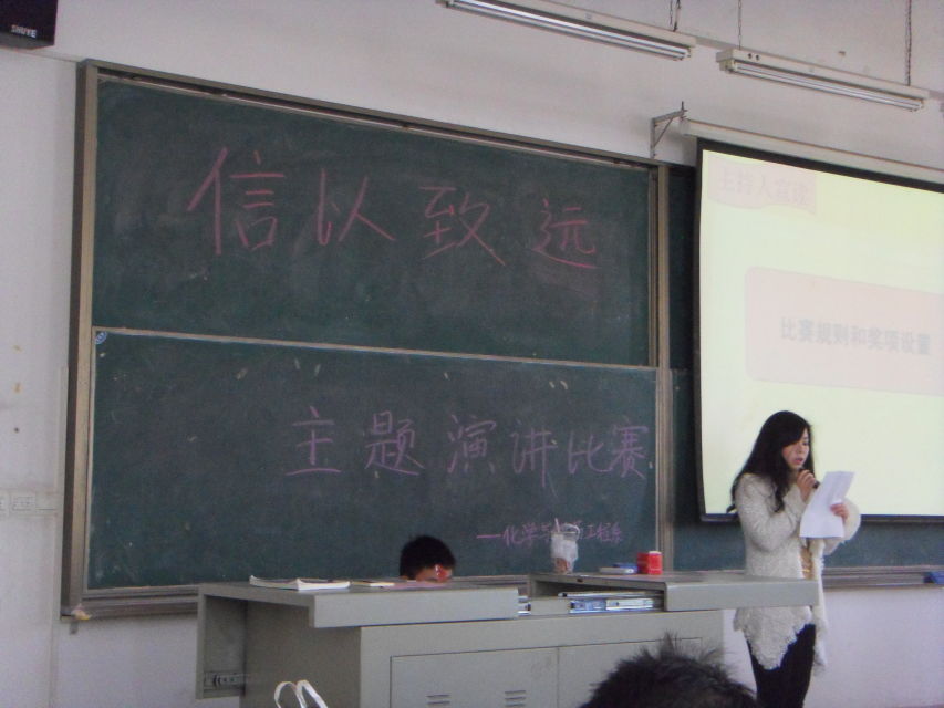 11月29日中午,我系“信以致远”演讲比赛在1-101室成功举行。化药系团总支书记吴振琦及团学联负责人与会,全场座无虚席。