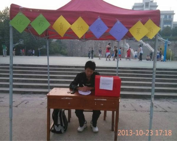 化药系青年志愿者协会于10月21日才得知她的事情,虽然比事情发生的时间晚了几天。邓玉林学姐是我们化药系的一份子,所以化药系青年志愿者协会就更应该为她做些什么。因此,同一天的晚上,协会就起草了爱心募捐的策划书。整个活动分两部分,第一个是通过直接募捐,另一个是间接募捐,也就是通过阳光义卖报纸来捐钱。