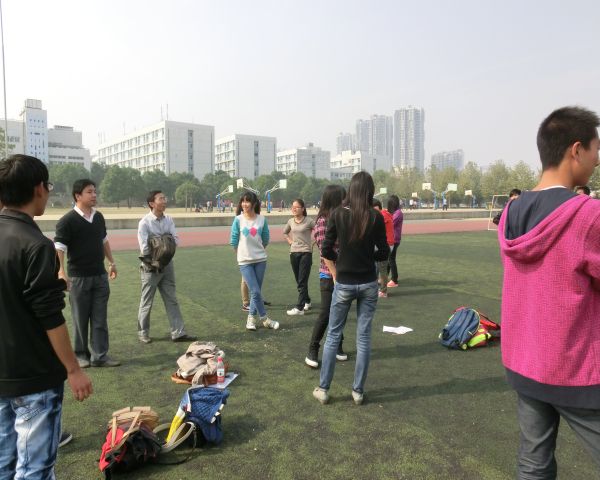 2013年10月23日中午,化学与制药工程系和土木工程系2013级心理委员,共31人参与了在学院后操场开展了一次团体合作的项目培训。此次培训是为了增进各系心理委员之间合作与交流,让他们通过亲身参与,掌握开展班级团队合作的方法和技巧,为本班的心理健康服务打下扎实的基础。