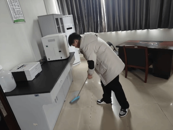 开始打扫前,石炎老师对同学进行分工,并讲解了卫生清洁的重要性,通过讲解,同学们意识到实验室的清洁卫生不仅关乎我们的工作环境,更直接关系到实验结果的准确性和可靠性,一个小小的尘埃或细菌都可能对实验结果造成严重的干扰和影响。因此,保持实验室的清洁卫生是至关重要的。在实际清洁过程中,同学们也发现一些平时容易忽视的细节,比如设备底部、角落等地方的灰尘和污渍,这些都可能对我们的实验工作带来潜在的危害。同学们摩拳擦掌,爬上爬下,不放过一个卫生死角,经过大家的努力,实验室恢复了往日的干净整洁。