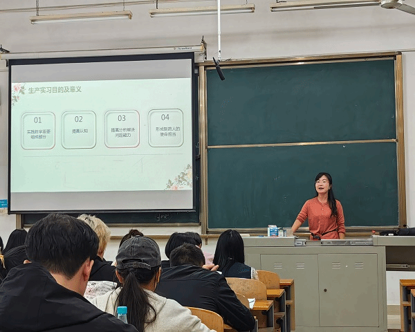 会中,吴老师为同学们介绍了此次实习工作的总体安排,并详细介绍了实习生产的意义及目的、实习生产的目标、生产实习考核与评价和实习报告撰写要求,强调学生应当严格遵守实习单位规章制度,服从管理,尊重师长,积极主动参与实习工作,认真完成实习任务;定期与实习指导教师沟通,汇报实习进展及遇到的问题,要注意人身安全,遵守社会公德。