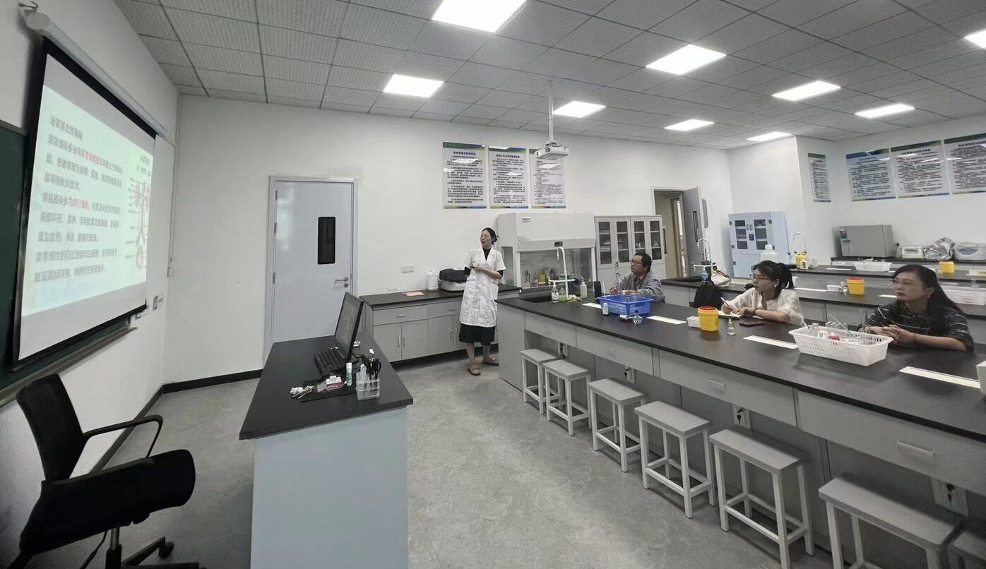 汪林玉老师讲解《无机化学实验I》中配位化合物的形成与性质的改变、氧化还原反应与原电池两个实验项目内容,汪老师简单明了的介绍了实验原理,并演示实验操作步骤,强调实验操作中的注意事项。听课教师鼓励上课老师在教学中强化思政内容,将“五会”内容引入到实际教学中。《临床微生物学检验技术实验》的课堂上,尹科老师模拟了从标本接收到病原菌培养和鉴定的全流程。观摩教师则从生物安全防护、关键操作演示的清晰度、以及如何引导学生建立“微生物思维”等角度进行了细致点评。大家一致认为,该课程的教学必须紧密对接临床实际,培养学生的无菌观念和严谨的科学态度。《临床血液学检验技术实验》是一门线上课程,学生需要登录系统,学习细胞的形态学和不同病症导致的细胞形态变化,杨欢老师和魏粤老师讲解本课程内容,磨课重点放在了骨髓细胞形态学的辨识与病例分析上。教师们探讨了如何利用线上平台更高效地进行教学以及如何设计综合性实验,将散落的知识点串联成诊断逻辑链,提升学生解决复杂临床问题的能力。