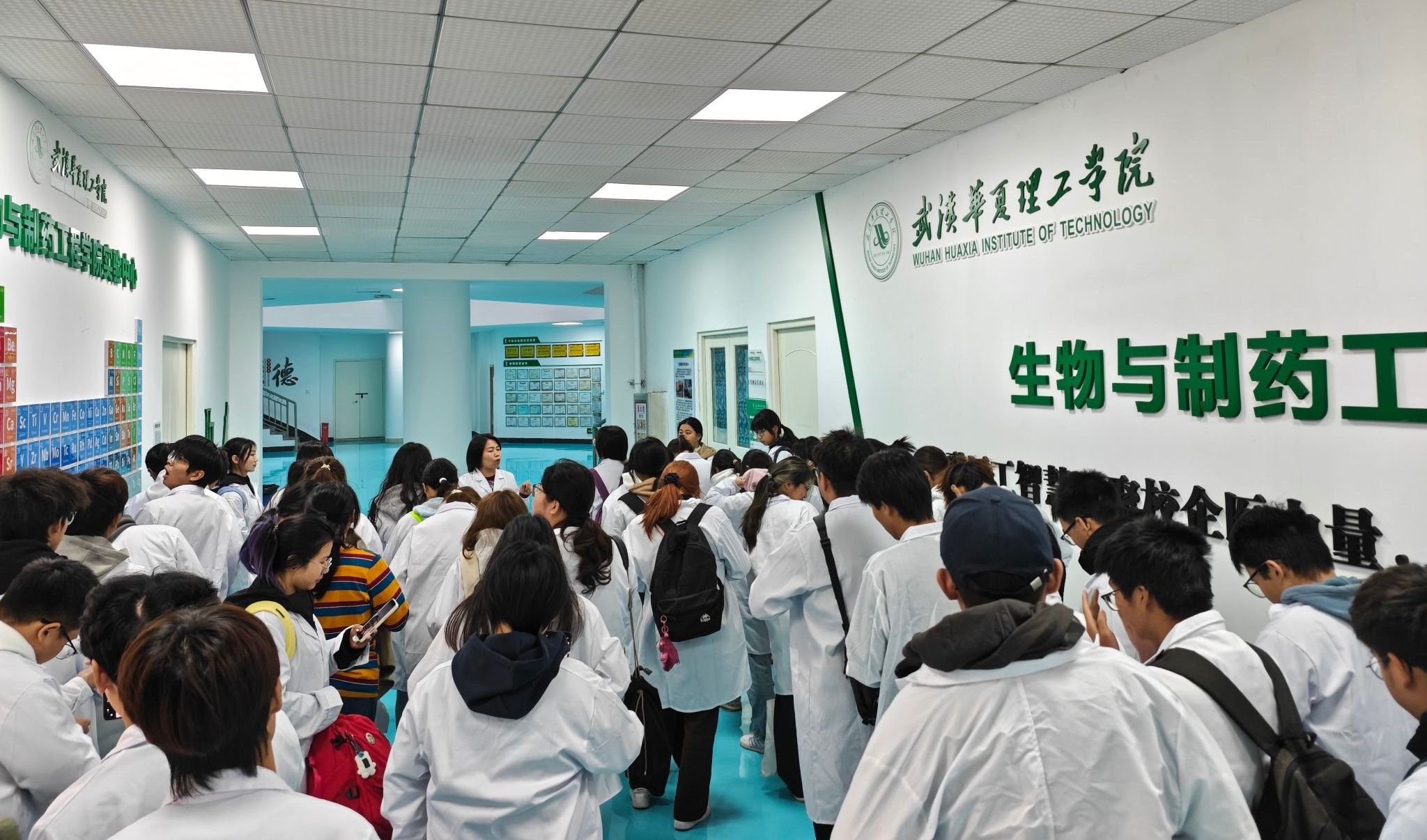 当大巴车顺利抵达光谷校区,在实验楼一楼,无机化学实验课程负责人石炎老师早已等候在此,热情迎接同学们的归来。集合完毕后,我院实验中心主任刘桂艳为同学们带来了“实验第一课”。她介绍了实验中心的组织架构、功能定位以及管理规范,并着重讲解了进入实验室必须遵守的安全准则、行为规范和上课要求。刘主任的讲解条理清晰、要求明确,为同学们即将开始的实验操作树立了严谨的安全意识和规范意识,奠定了坚实的制度基础。实验中心各实验室负责人带领各专业同学们参观专业实验室,并向大家简要介绍了这些专业实验室的主要功能、开设的核心专业课程,以及部分大型仪器设备的基本用途和重要性。这次参观激发了他们对未来专业学习的浓厚兴趣,增强了专业认同感与学习动力。